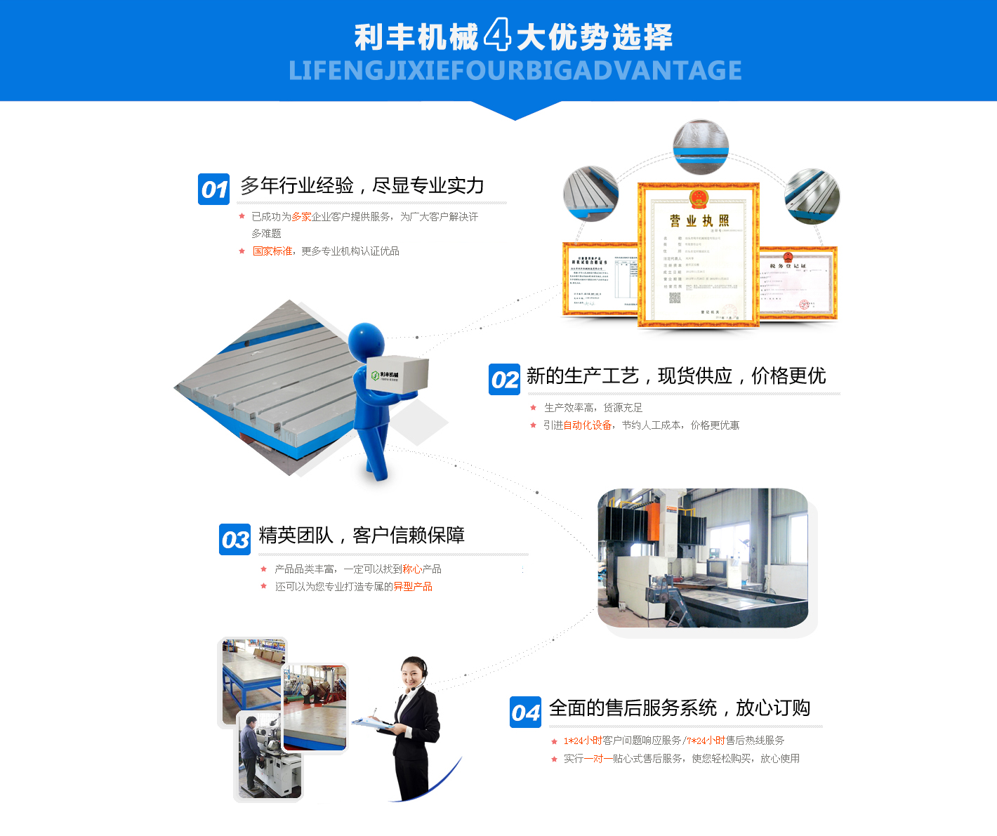 泊頭市利豐機械制造有限公司是生產工具,量具的單位,地處河北省泊頭市。我公司生產的鑄鐵平板、鑄鐵劃線平臺、機床鑄件、大理石量具等量具,具有設計合理、結構穩(wěn)定、使用壽命長等特點,廣泛用于機械加工、工具車間、裝配車間、機(檢)修車間、計量室及精密加工的檢驗、測量和研究。熱忱歡迎_兄弟廠家朋友前來我公司參觀考察合作,在互惠互利的基礎上,攜手共進,共圖發(fā)展。